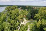 Wir bestiegen den Turm und schauten von oben auf das Treiben am Mirower See. Am gegenüberliegenden Ufer befanden